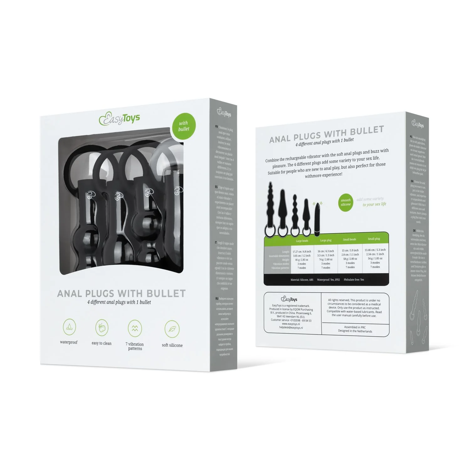 Ontdek grenzeloos plezier met deze complete anaal plug set. Deze set bevat vier plugs van verschillende groottes, perfect voor beginners en ervaren gebruikers. Gemaakt van hoogwaardig siliconen materiaal voor een comfortabele en veilige ervaring. De set wordt geleverd met een losse bullet vibrator, met zeven opwindende patronen en drie stimulerende standen voor gepersonaliseerd genot. USB-oplaadbaar voor gemakkelijk en duurzaam gebruik. Verken nieuwe sensaties en geniet van ultieme stimulatie met deze veelzijdige set!