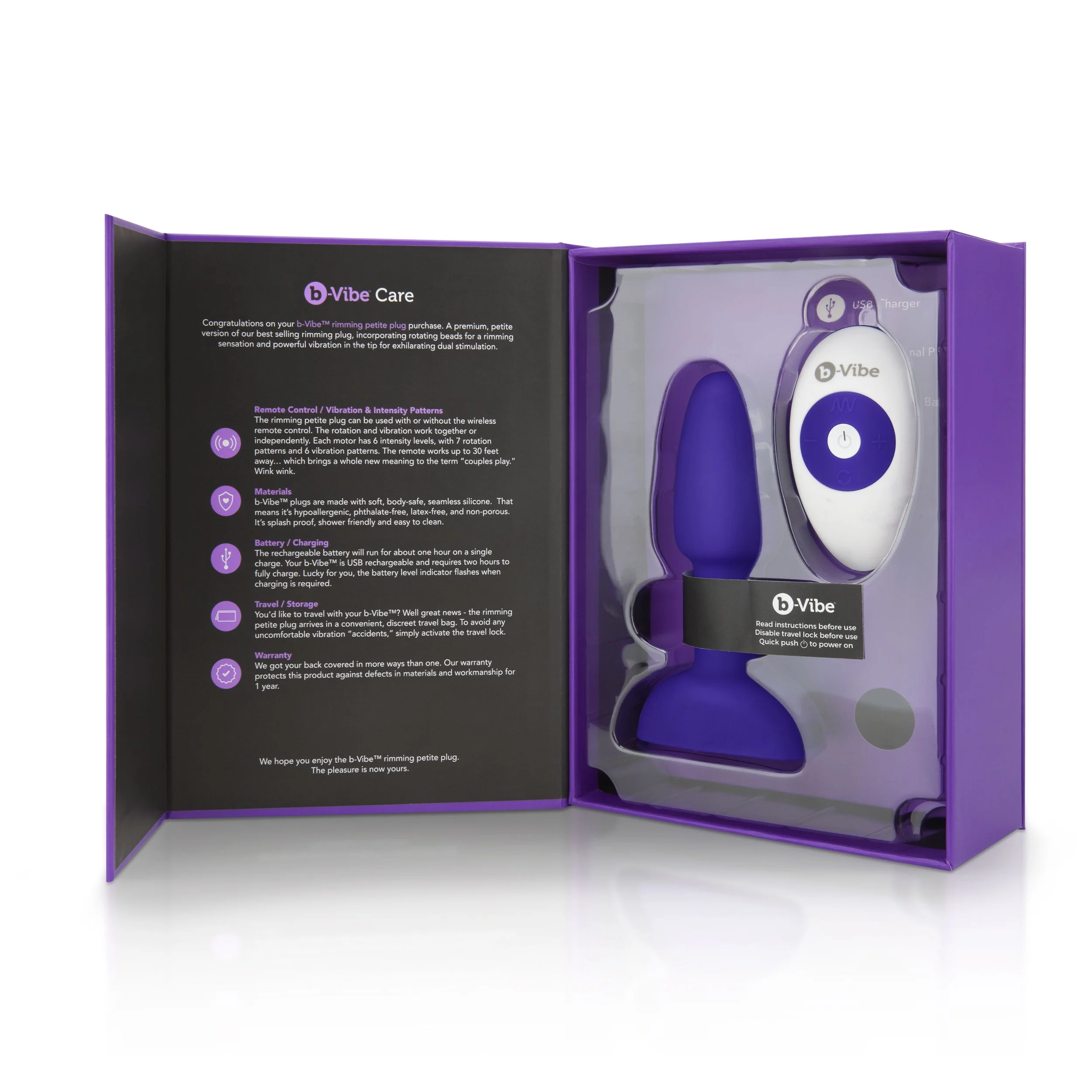 Productinformatie "B-Vibe - Rimming Petite Remote Control Plug Paars"