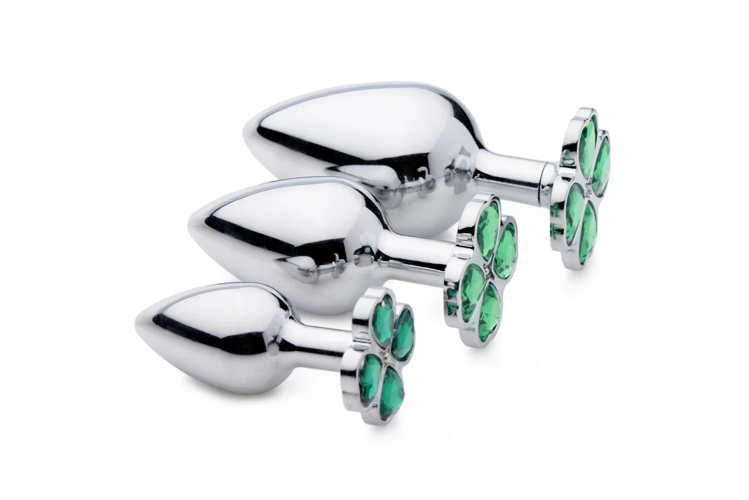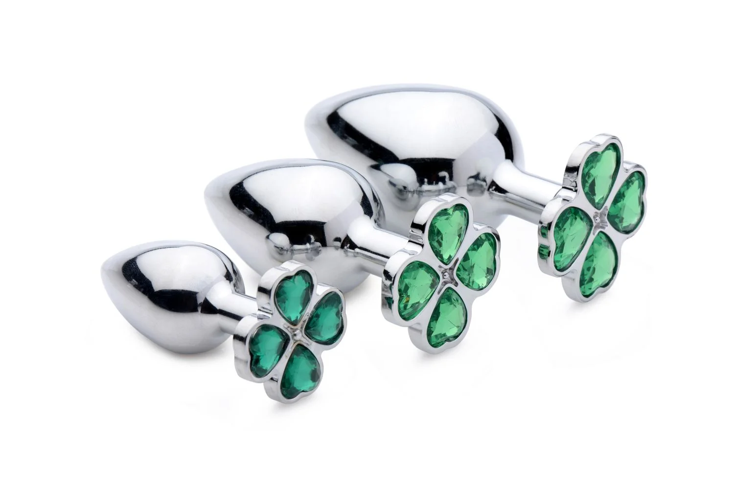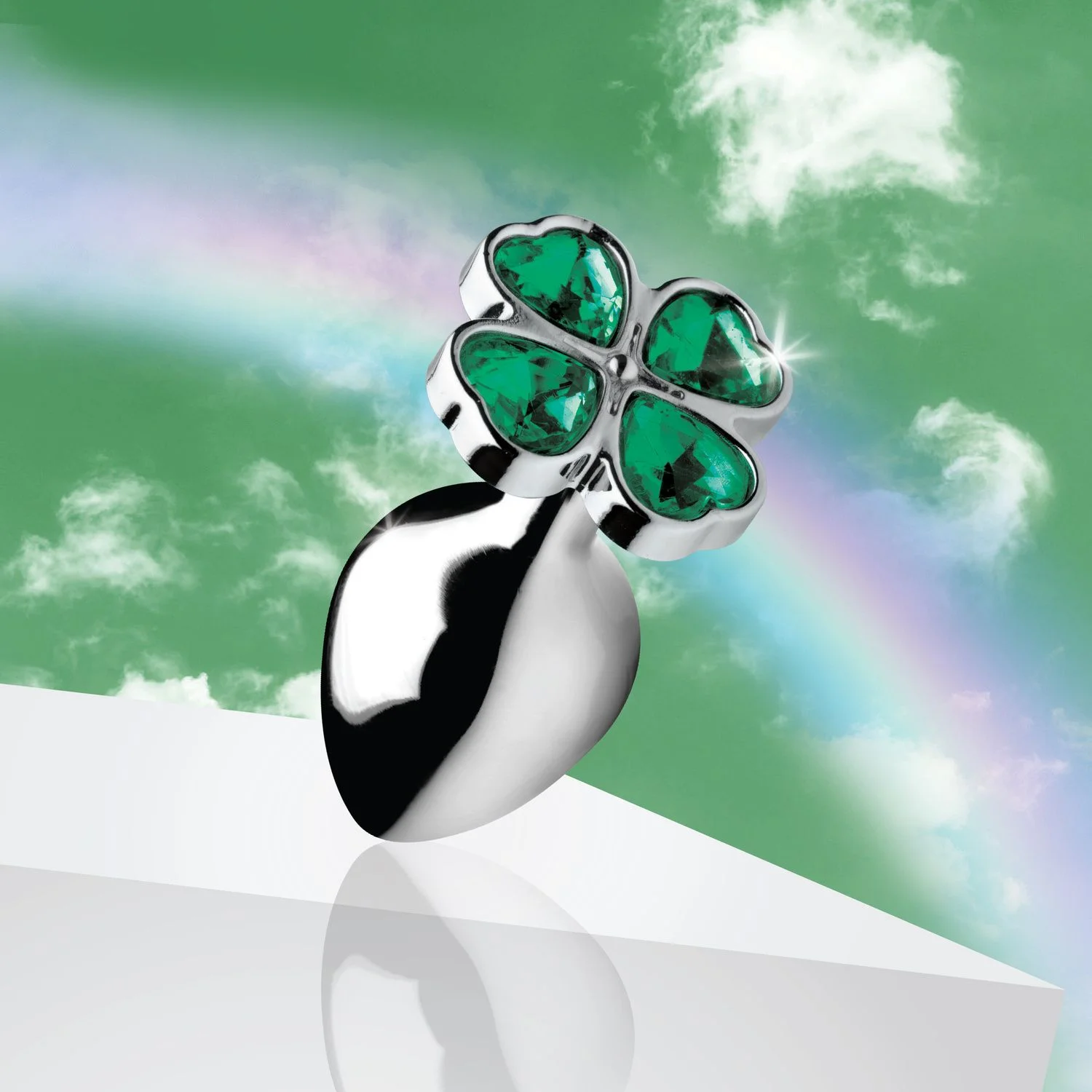 Laat je geluk stralen met de Lucky Clover Anaalplug van Booty Sparks. Deze metalen plug in medium formaat is voorzien van een opvallende klavervier-jewel aan de onderzijde – een verrassend detail voor jouw partner. Gemaakt van nikkelvrij aluminium voor een aangenaam gewicht en perfect voor temperatuurspel: verwarm of koel de plug eenvoudig met water vóór gebruik. De smalle hals zorgt voor comfort tijdens het dragen, en dankzij het gladde oppervlak gebruik je hem met elk glijmiddel naar keuze. Reinig na gebruik met milde zeep of toycleaner.