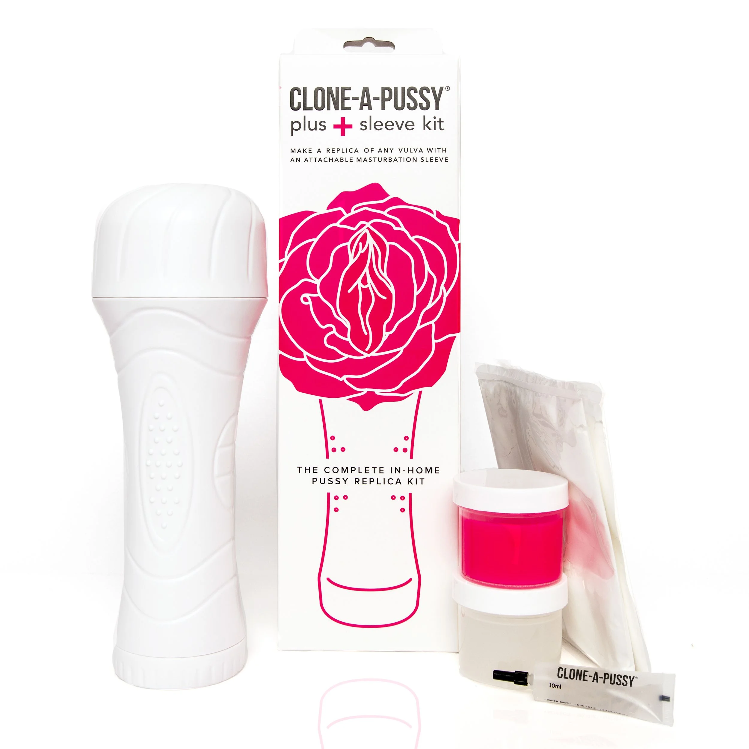 De Clone-A-Pussy+ Plus Sleeve Kit is perfect voor degenen die op zoek zijn naar het ideale cadeau voor vrijgezellenfeesten, Valentijnsdag, jubilea en meer. Elke kit wordt geleverd met alles wat je nodig hebt, inclusief roze siliconen, vormpoeder, sleeve, harde behuizing, op water gebaseerd glijmiddel en gemakkelijk te volgen instructies. Dus wacht niet langer en maak vandaag nog een replica!