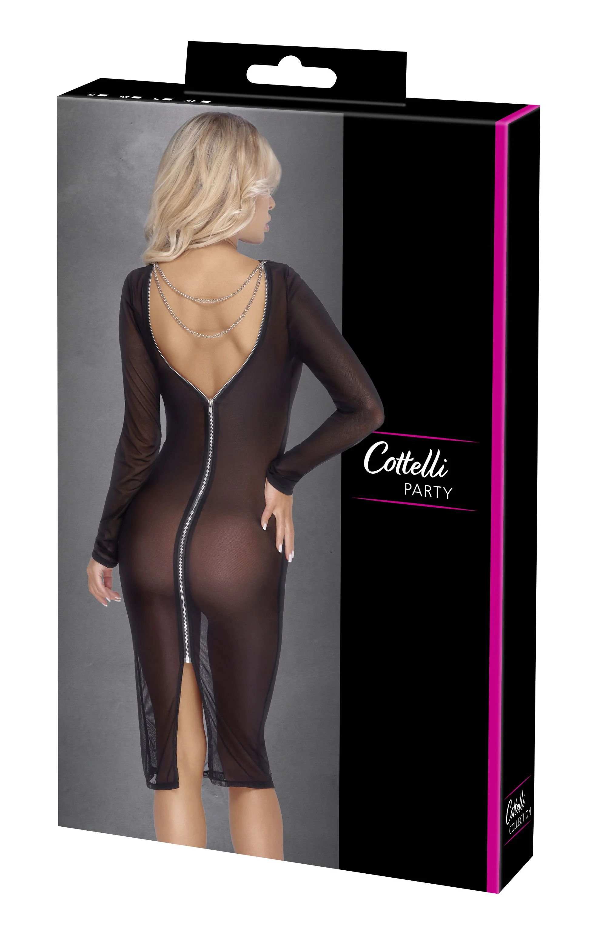 Productinformatie "Cottelli Party - Transparante Jurk Met Lange Mouwen - Zwart"