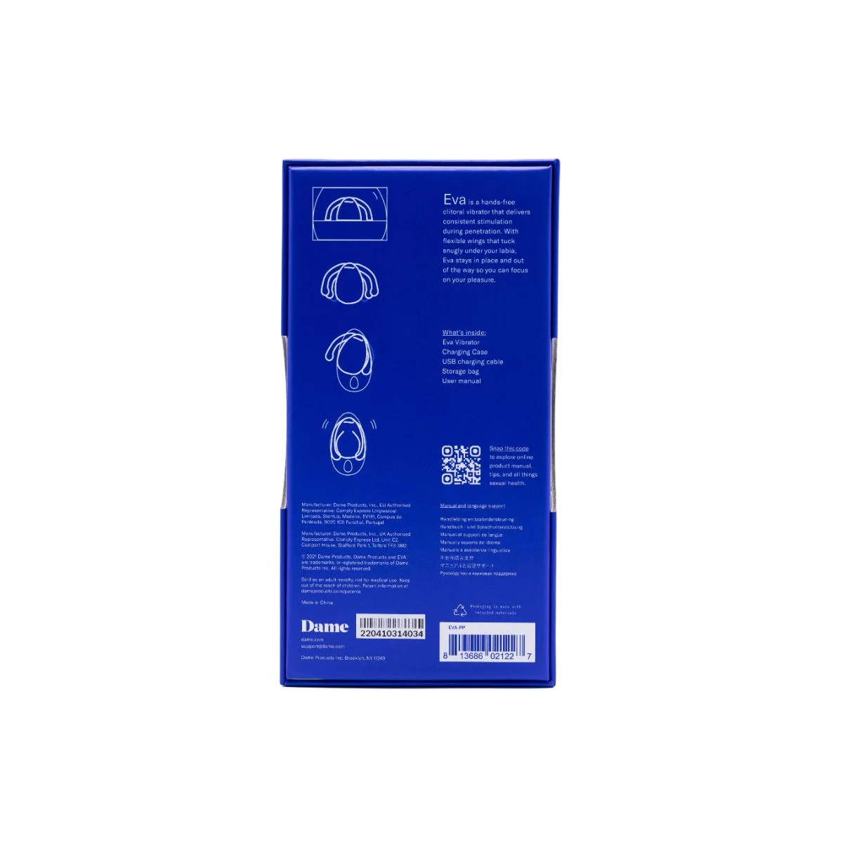 Dankzij de flexibiliteit van de vleugeltjes past Eva LL zich aan veel verschillende lichaamstypes aan en blijft ze betrouwbaar zitten, zelfs wanneer het spel dynamischer wordt. Tijdens gebruik rust de clitoris voortdurend tegen de motor, waardoor de vibraties precies terechtkomen waar ze het meest effect hebben. De drie standen maken het mogelijk om te schakelen tussen subtiel opbouwende stimulatie en een intenser ritme.