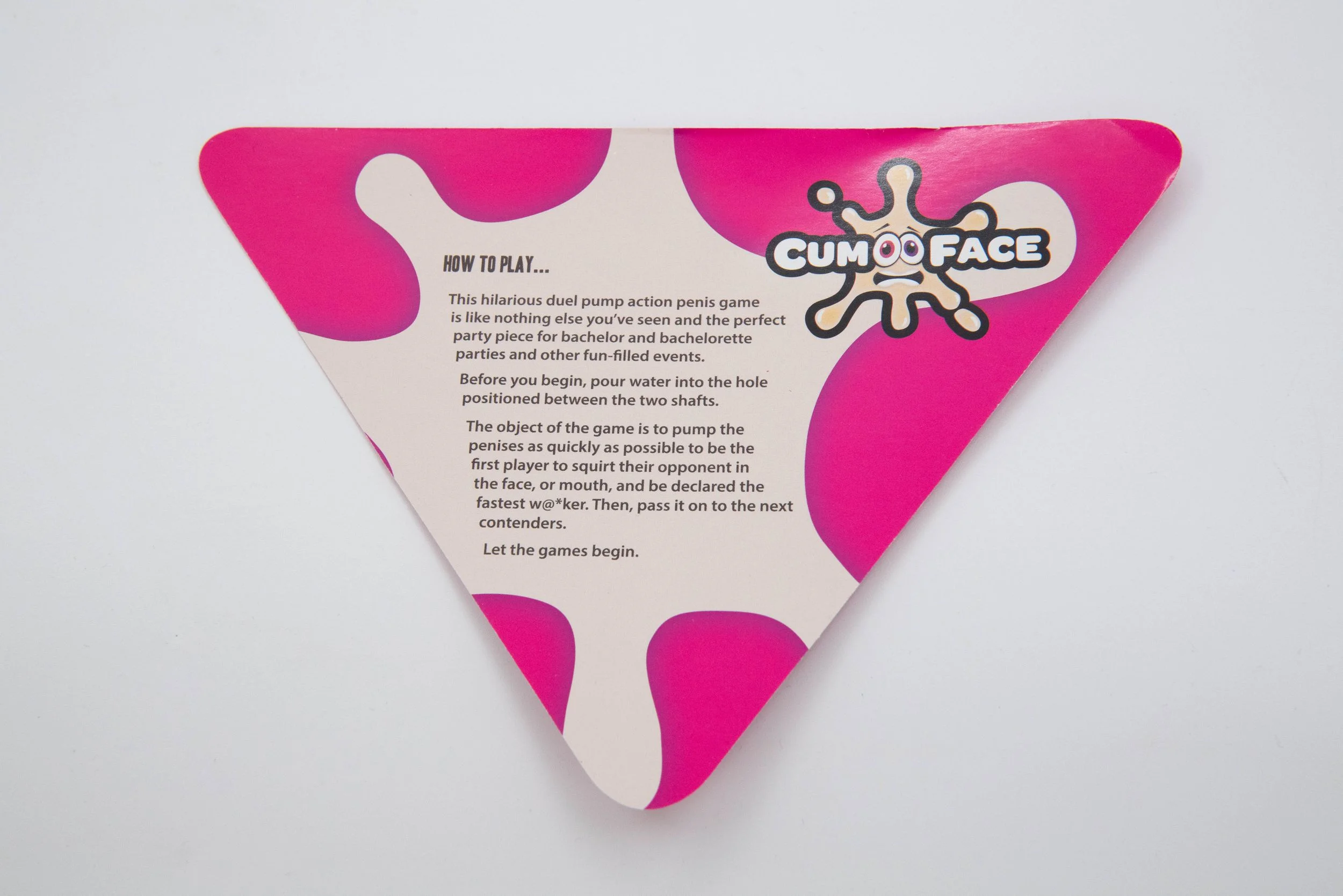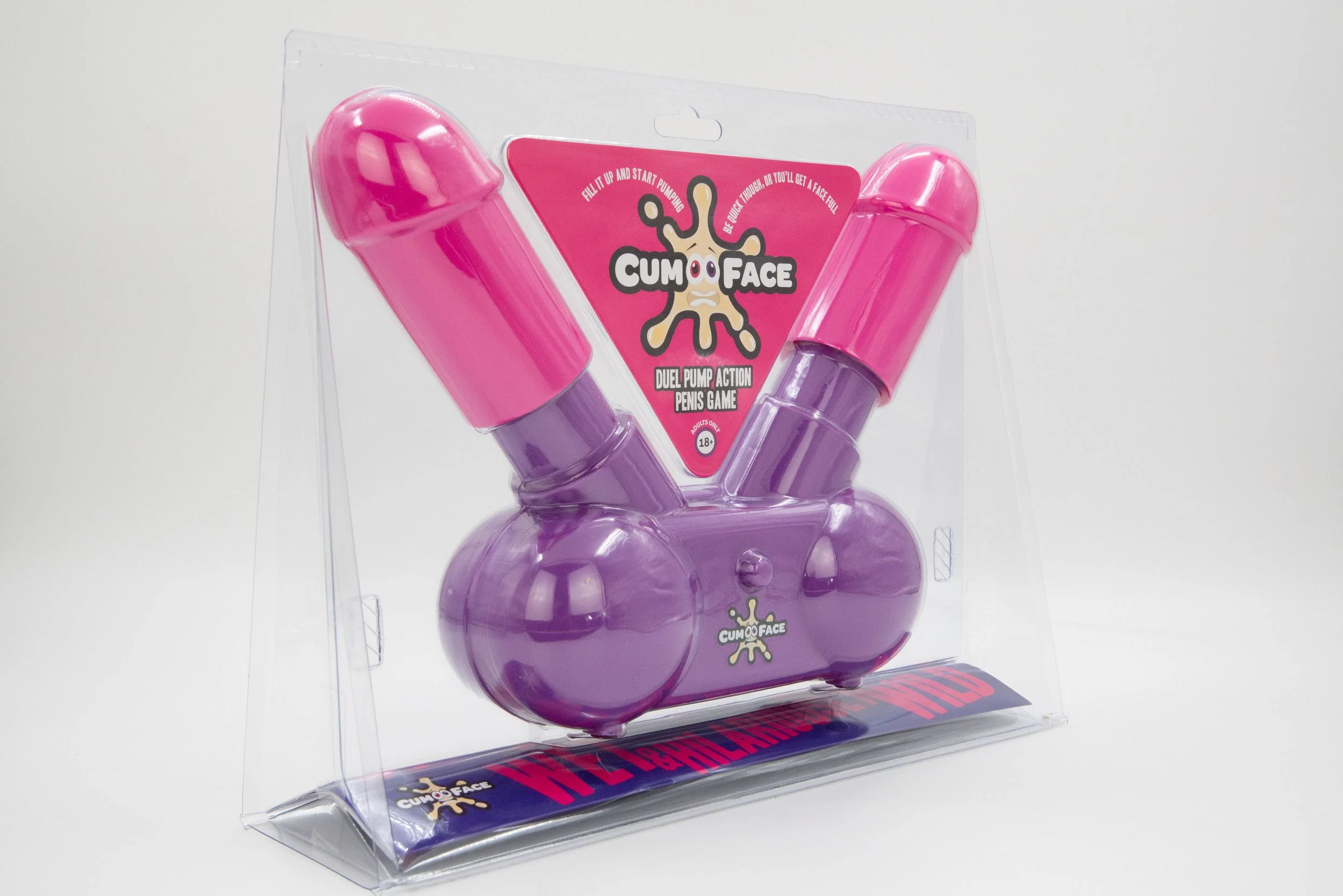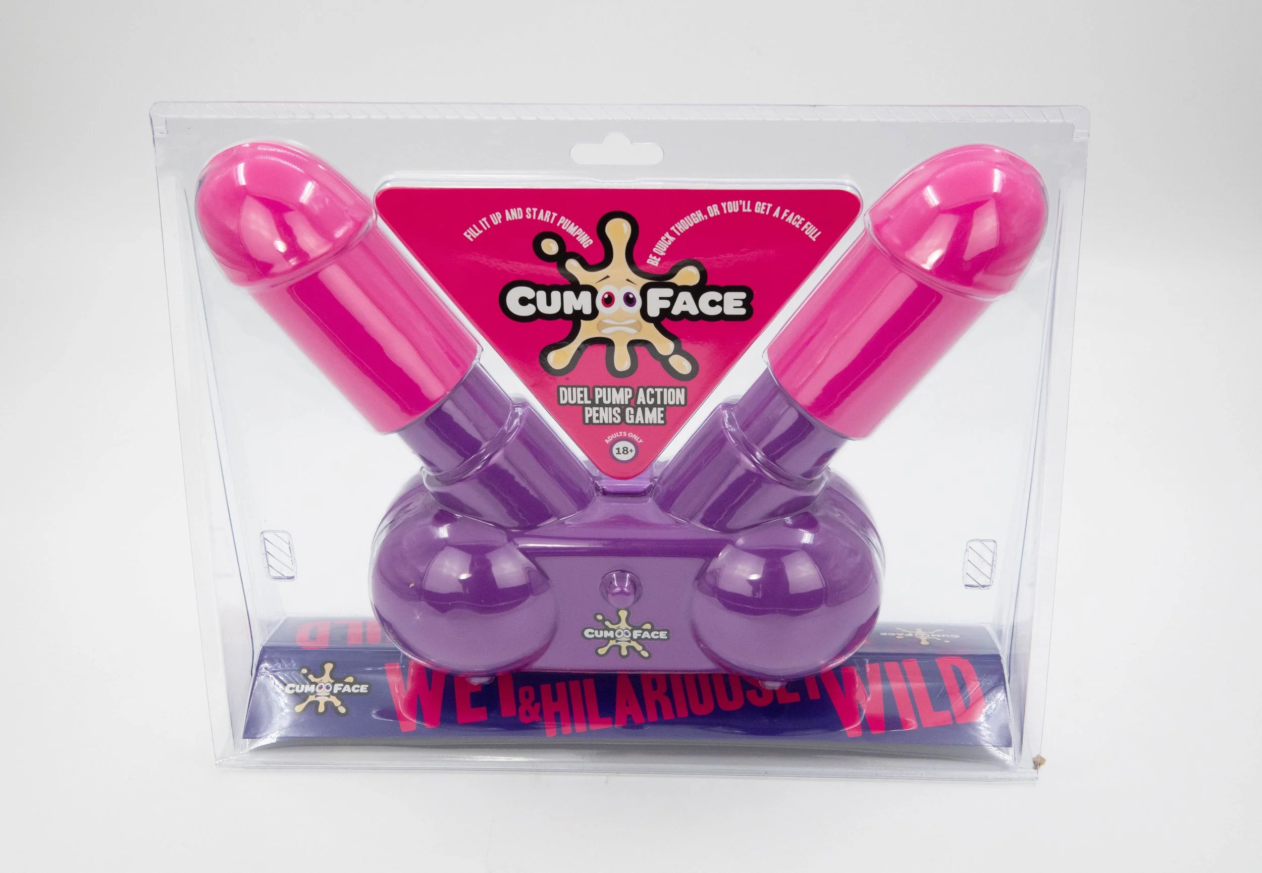 Cum Face Game bestaat uit een houder met 2 penissen. Je vult het reservoir onderop met ieder gewenste drinkbare vloeistof. 2 Spelers dagen elkaar uit en nemen ieder plaats achter 1 van de penissen. Na het startsein beginnen beide spelers met het "aftrekken" van de penissen. Degene die de penis het eerst laat "klaarkomen" wint de ronde!