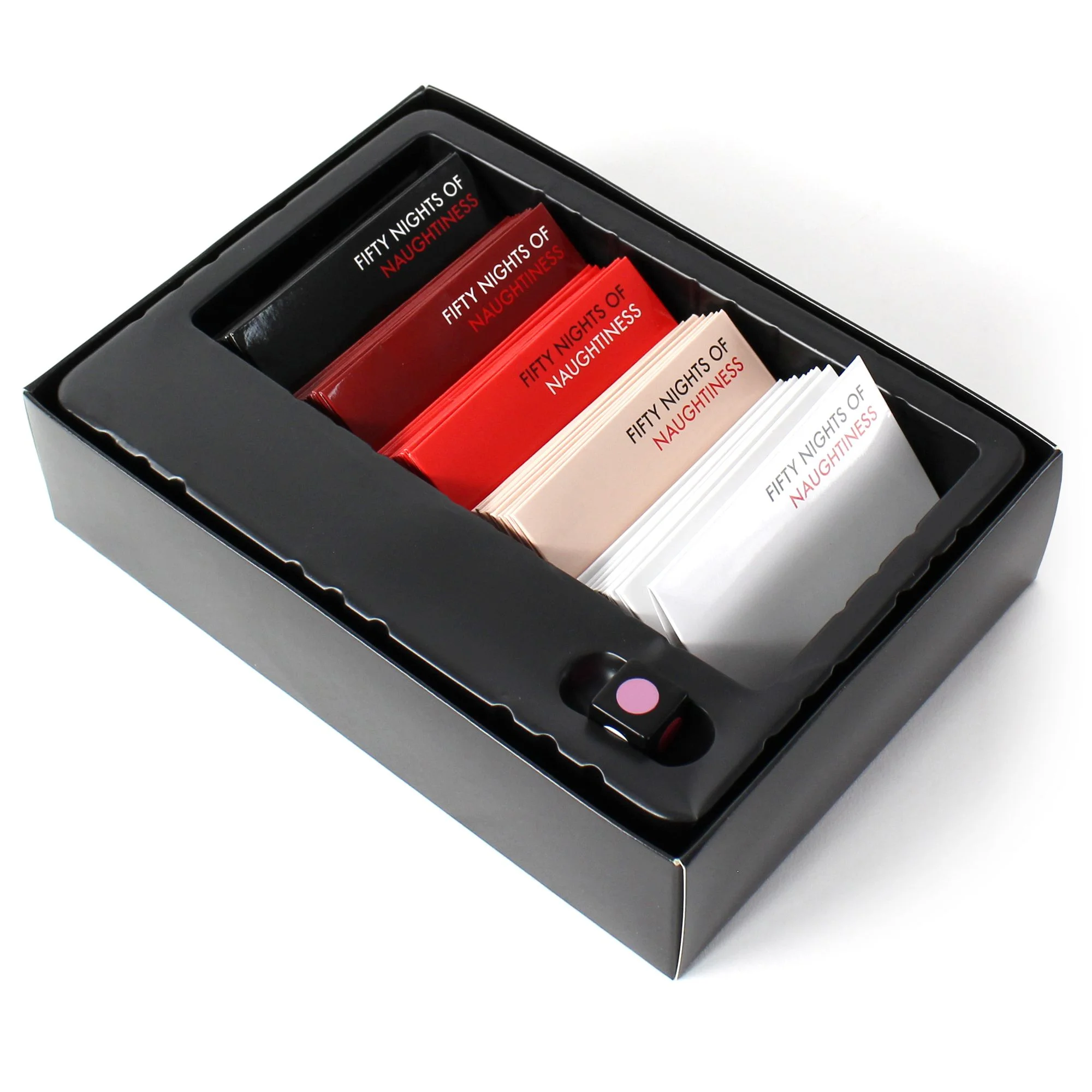 Ontdek de opwinding van erotiek en powerplay met 50 Nights of Naughtiness. Dit spel bevat tien geheime enveloppen in elk van de vijf speelniveaus: wit, roze, rood, scharlaken en zwart. Elke envelop zit boordevol sensuele ideeën, ondeugende avonturen en erotische verrassingen om jullie relatie nieuw leven in te blazen. Daarnaast helpt het spel om de liefdevolle intimiteit tussen jou en je partner te behouden.