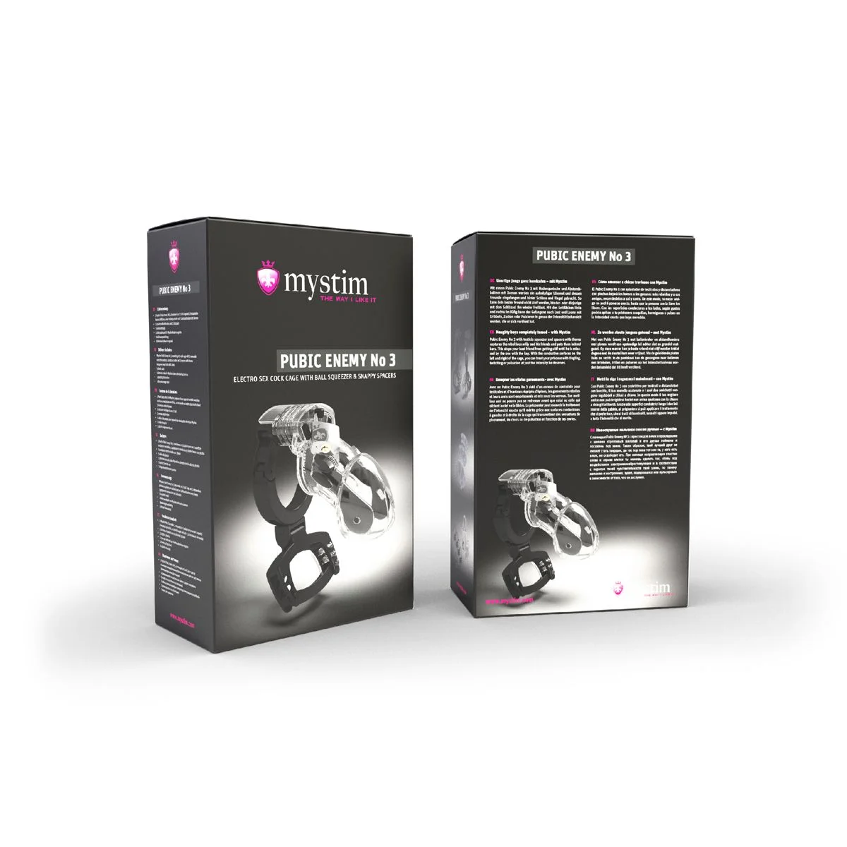 Pubic Enemy No. 3 is een kuisheidskooi en voorkomt dat de drager een erectie kan krijgen. Deze kuisheidskooi is speciaal voor de liefhebbers van E-stim stimulatie. De kooi heeft gedeeltes aan de zijkanten die stroom geleiden, deze zijn verwijderbaar. Het bijgeleverde elektrokabeltje kan eenvoudig in een powerbox ingeplugd worden. De kuisheidskooi is 82 mm, maar kan in lengte aangepast worden tot een lengte van 98 mm. Na gebruik kun je de Pubic Enemy No. 3 schoonmaken met toycleaner en kun je hem opbergen in de meegeleverde opbergetui.