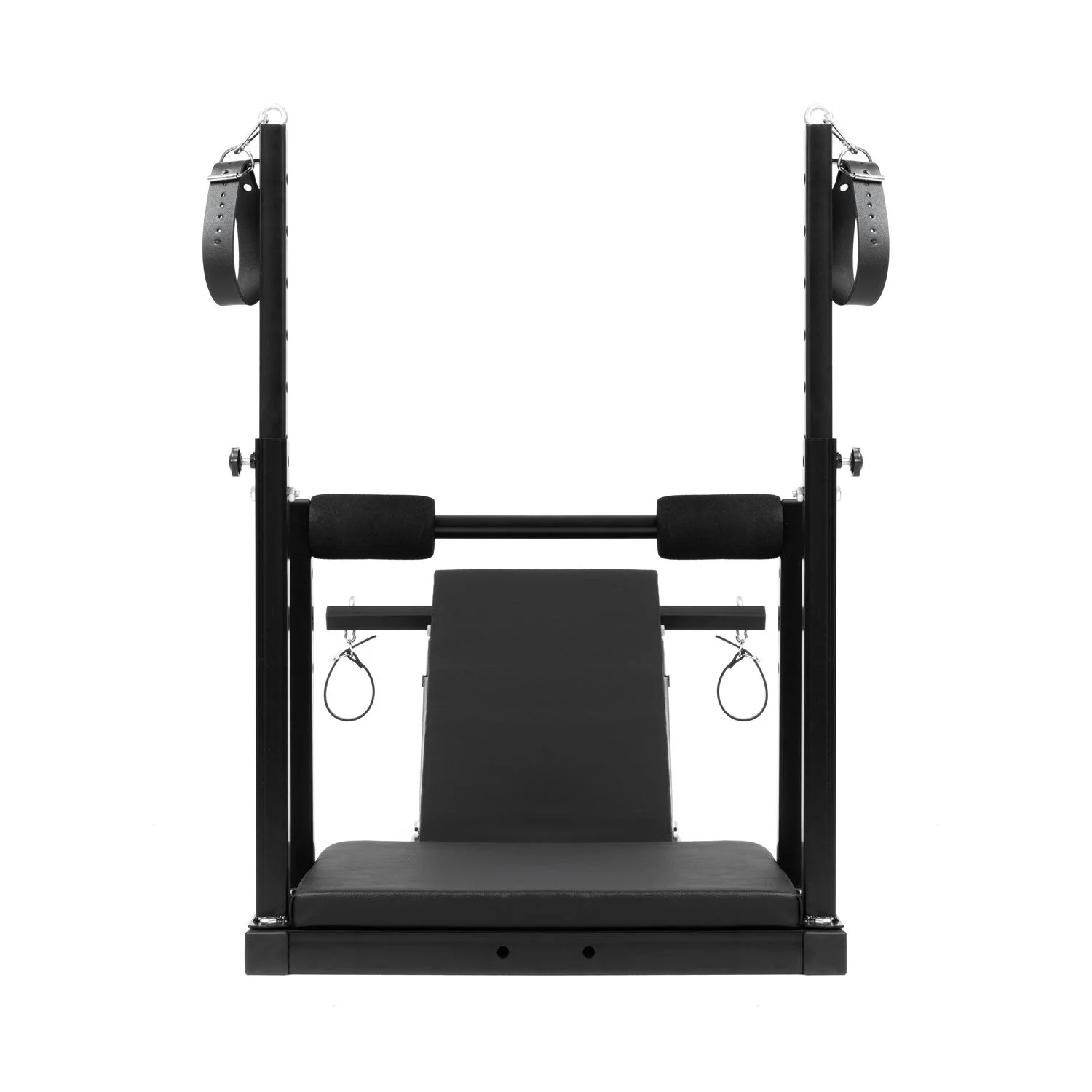 Deze veelzijdige bondagestoel stelt je in staat om te experimenteren met verschillende posities. Door de aanpasbare rugleuning, de verwijderbare middelste ondersteuning en de verstelbare hoogte zijn er geen grenzen aan je fantasie! Vind je favoriete beperkende posities en geniet van je spel. De stoel is stevig ontworpen, gedeeltelijk bekleed en bevat zachtere elementen, zodat het comfortabel blijft om hem langere tijd te gebruiken.