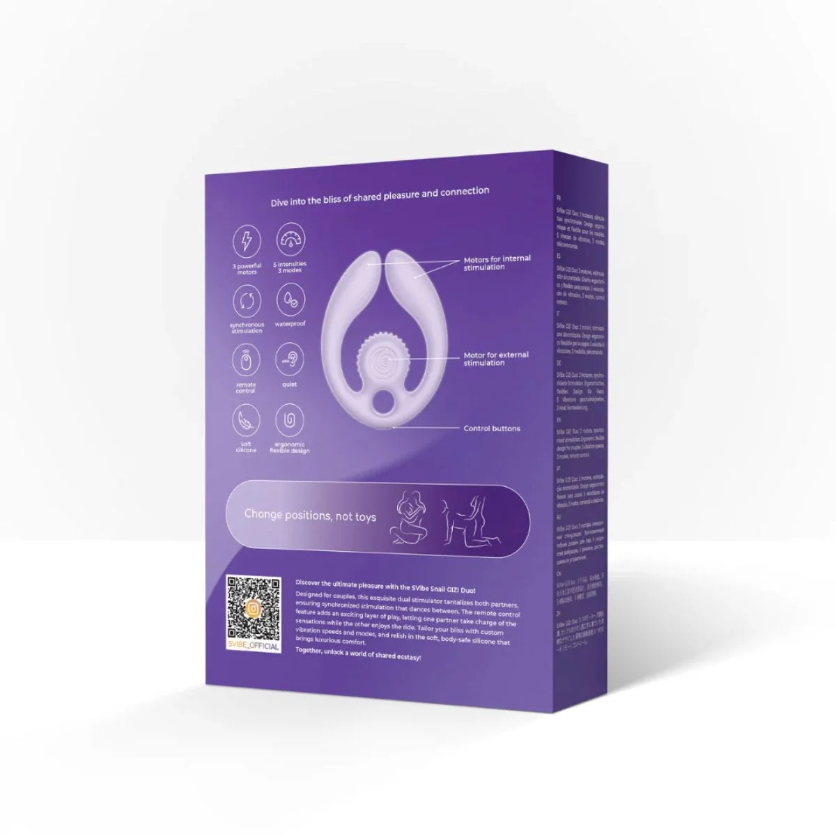 Ontdek een nieuwe manier van samen genieten met de SVibe GIZI Duo, een veelzijdige stimulator die speciaal is ontworpen voor gedeeld plezier, maar net zo goed solo gebruikt kan worden. Dankzij het slimme ontwerp met twee flexibel meebewegende armen vormt deze toy zich moeiteloos naar het lichaam, waardoor intieme momenten natuurlijk en ontspannen aanvoelen in uiteenlopende posities.