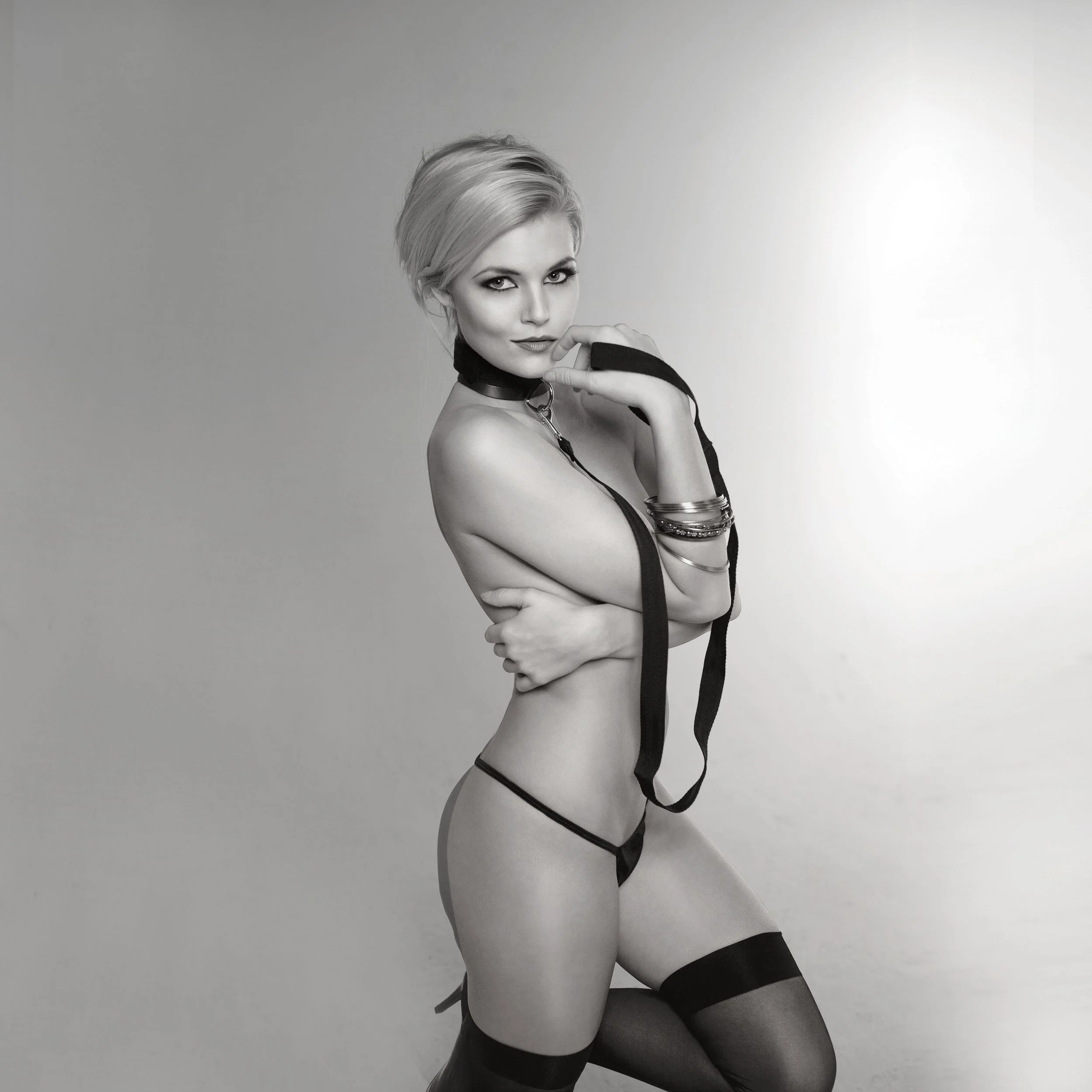 Zin om leiding te geven? Of misschien leuk om te volgen? Hoe dan ook, deze zwarte riem en halsband zullen aan uw behoeften voldoen. Maak een paar handboeien vast voor extra plezier. Leiden, volgen, beschimpen en plagen. Breng je fantasiespel naar nieuwe hoogten.