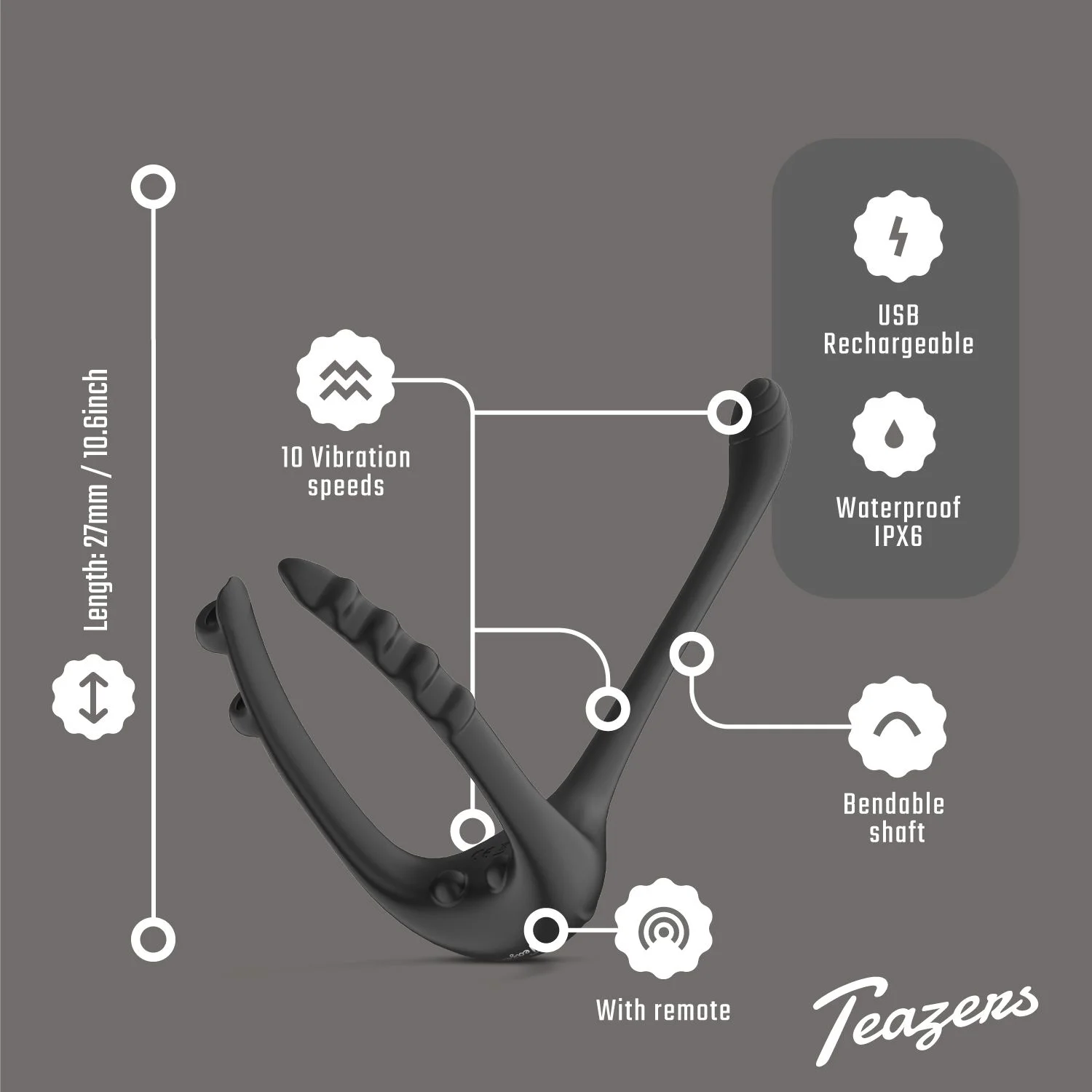 Productinformatie "Teazers Driedubbele Prostaat Vibrator met Afstandsbediening"