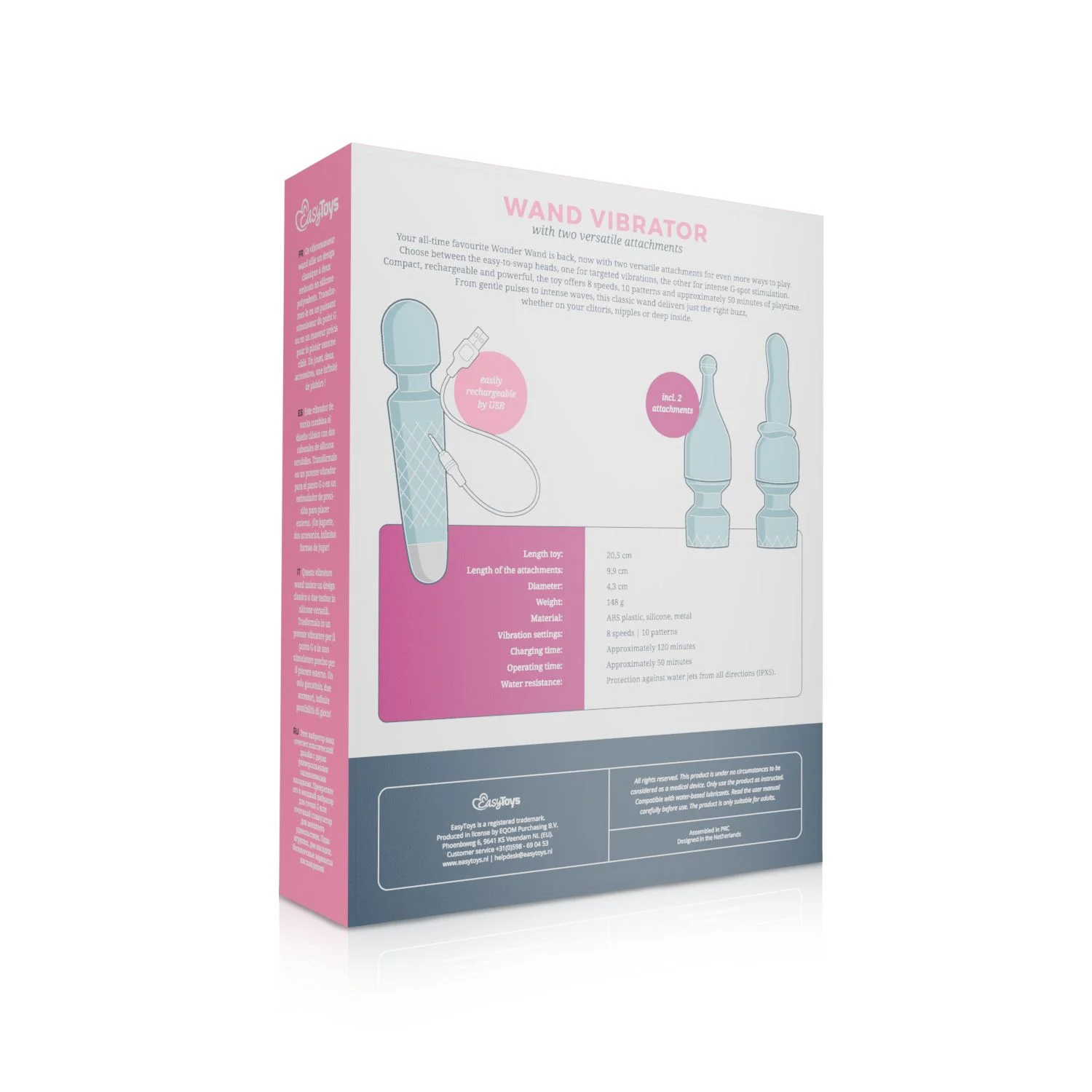 De wand ligt prettig in de hand en is gemaakt van zacht siliconen, waardoor iedere aanraking soepel en comfortabel aanvoelt. De twee meegeleverde opzetstukken zorgen voor extra veelzijdigheid. Wissel eenvoudig tussen gericht contact of een meer omhullende stimulatie om precies dat gevoel te creëren waar je op dat moment naar verlangt.