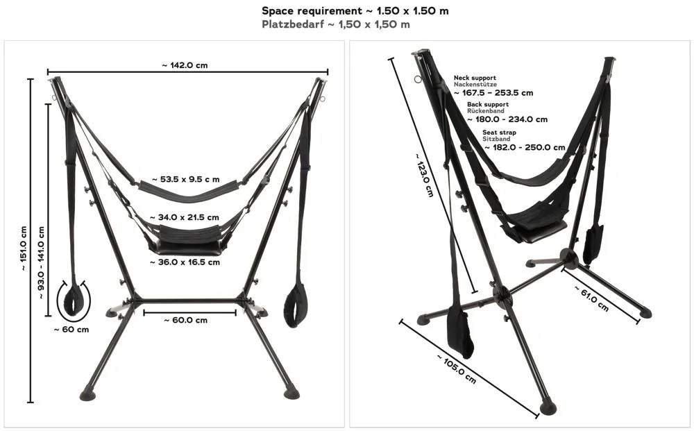 Het zachte zitkussen en de twee zachte ligkussens voor de rug en het hoofd/nek en de twee comfortabele pluche bevestigingslussen voor handen, benen of voeten hangen aan scheur vaste riemen. Alle riemen zijn individueel in lengte verstelbaar. De zitting kan ook worden verwijderd (klittenband).