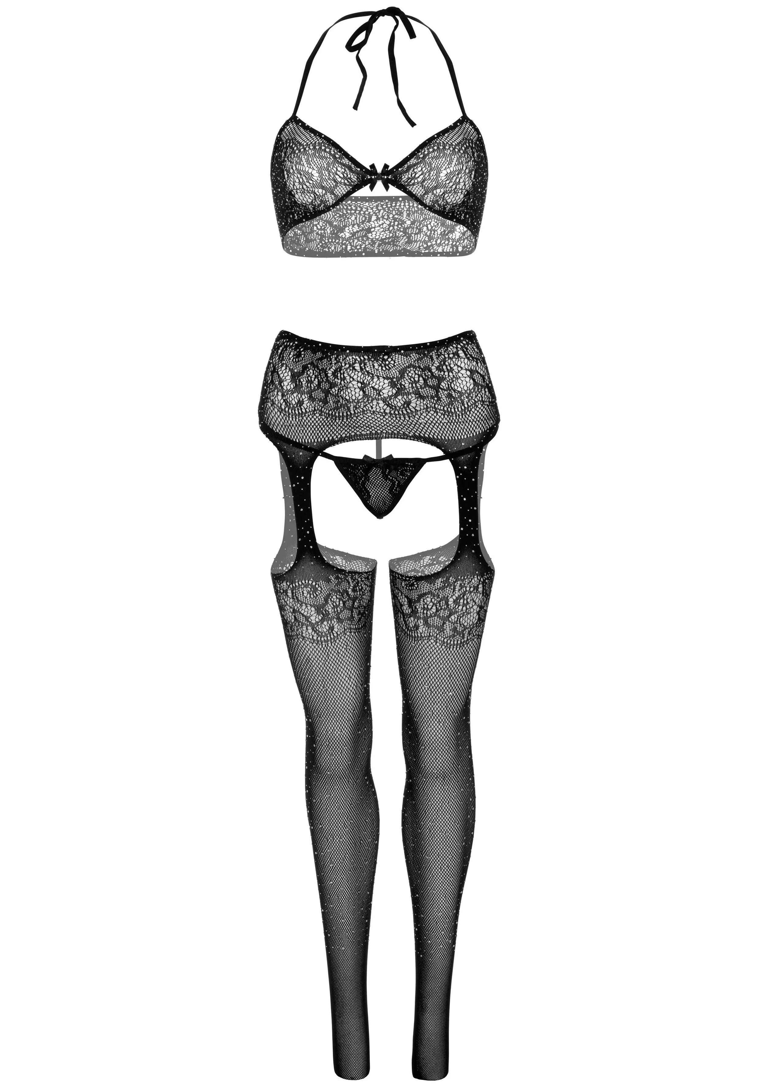 Leg Avenue – Dotted Net 3-Delige Set – Zwart