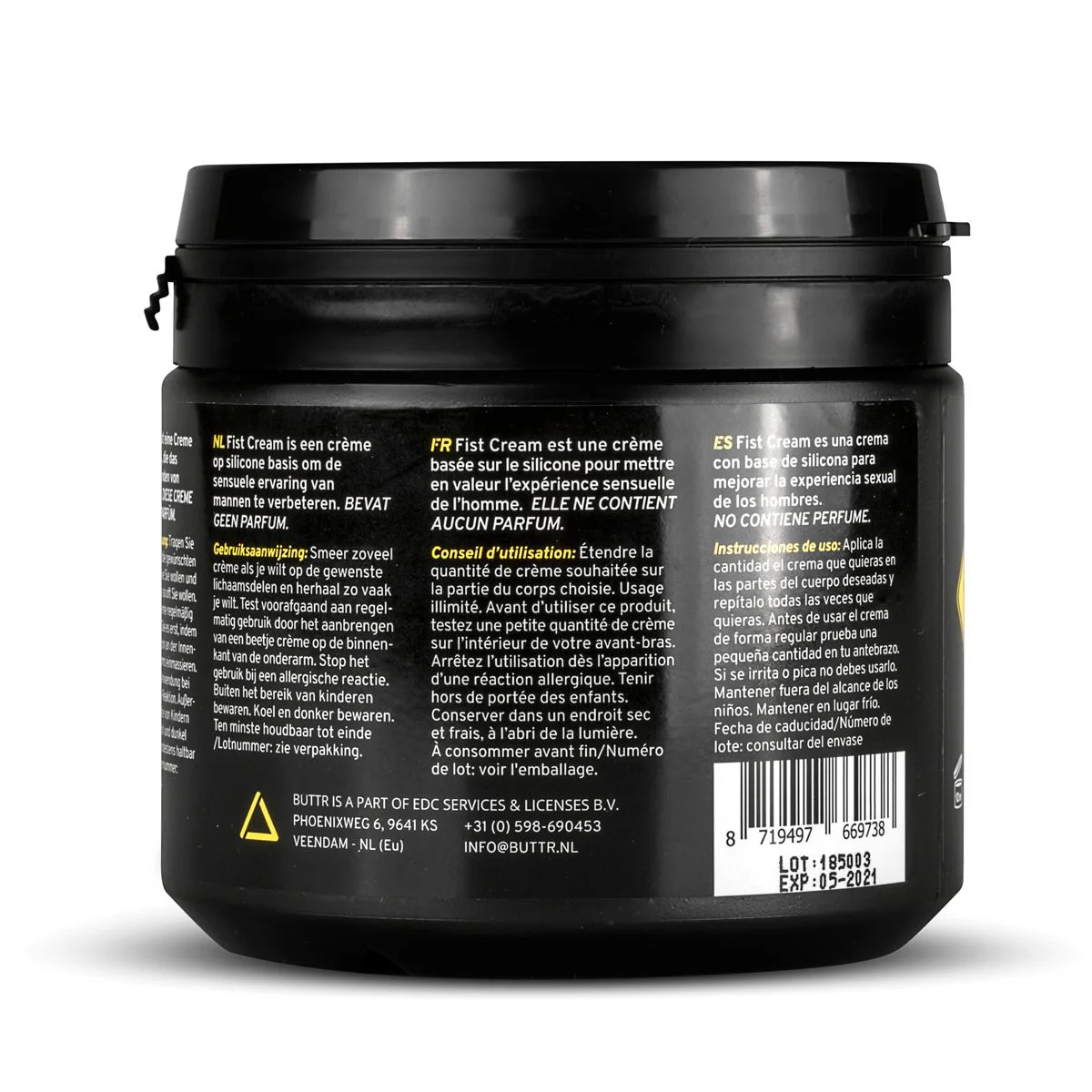 BUTTR Fisting Cream is een speciale crème voor anale penetratie. De fisting crème is dikker dan de standaard glijmiddelen waardoor de penetratie soepeler gaat. Het is zacht voor de huid, blijft lang glad en is vrij van parfums. De grote pot maakt het pakken van extra glijmiddel eenvoudig waardoor jij je enkel hoeft te focussen op plezier. Let op: vermijd contact met de ogen. Niet geschikt voor oraal gebruik of in combinatie met latex condooms of latex/siliconen toys. Stop het gebruik bij roodheid, een branderig of een pijnlijk gevoel. Gebruik het product niet op een beschadigde huid.  Ingrediënten: aqua, petrolatum, paraffinum liquidum, cetearyl alcohol, propylene glycol, PEG-8 stearate, ceteareth-25, dimethicone, phenoxyethanol, isopropyl myristate, ethylhexylglycerin, citric acid