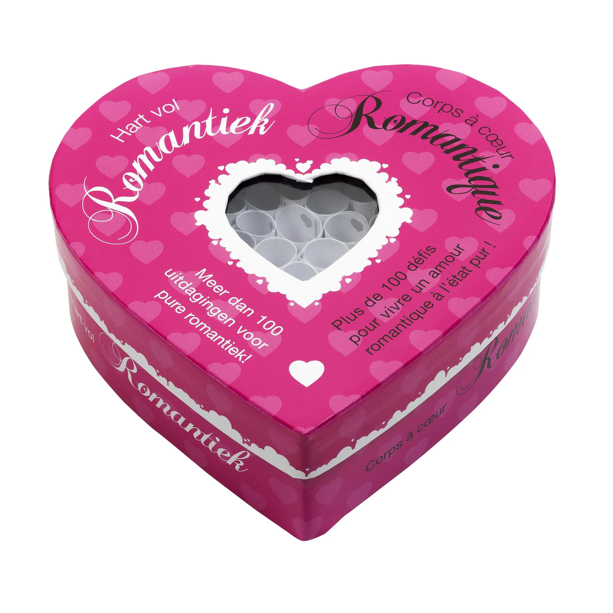Trek het slipje van je partner uit zonder je handen te gebruiken. Vertel een van je stoutste fantasieën. Doe eerst iets teds, daarna iets intiems en uiteindelijk iets brandends voor je partner… waar zal dit toe leiden? ‘Hart vol Erotiek’ is een spel dat de zintuigen prikkelt voor jou en je partner. Jij of je partner pakt de pincet en ontvouwt het hart. Wat gaat er gebeuren met jou? Is het een speelse verleiding, een inleidend voorspel, een fantasie om te delen of een erotische uitdaging? Dit spel is niet te vergelijken met een ander spel, er is geen tijdslimiet, alleen winnaars. Op een humoristische manier zal dit spel de intimiteit in de relatie vergroten. Sommige opdrachten kunnen direct worden uitgevoerd, maar het huren van een erotische film of het voorbereiden van een opwindende verrassing zorgt later voor een aangename gedeelde ervaring. Taal: Nederlands & Frans