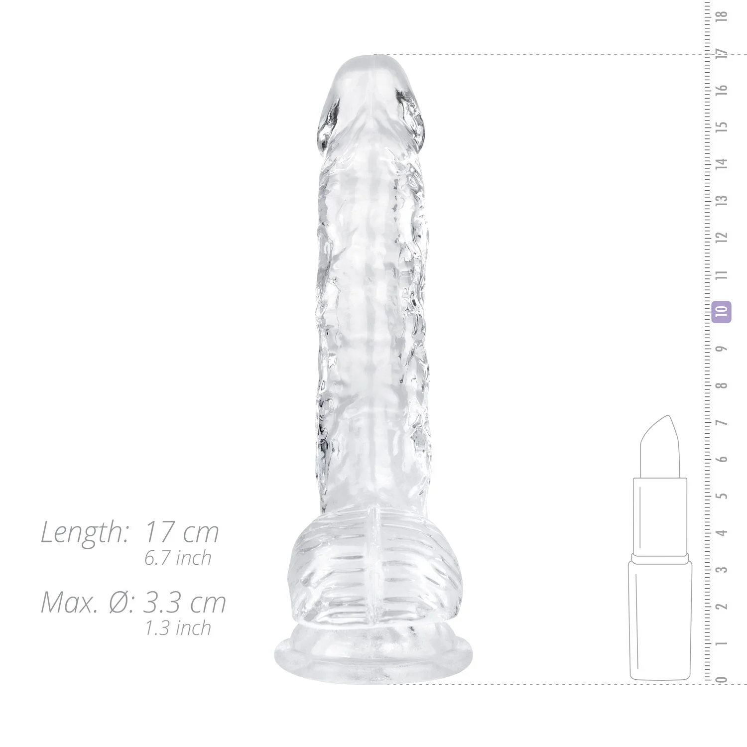 Als je een realistisch gevoel wilt tijdens je sessie, zorg er dan voor dat je deze dildo aan je speelgoedcollectie toevoegt. Terwijl hij alle gewenste kenmerken van een echte penis heeft, zoals een geaderde schacht, een opvallende top en ballen, is de dildo gemaakt van helder jelly, wat hem absoluut esthetisch maakt! De zuignap hecht aan verschillende oppervlakken, waardoor je vrijheid hebt en veel mogelijkheden voor creativiteit.