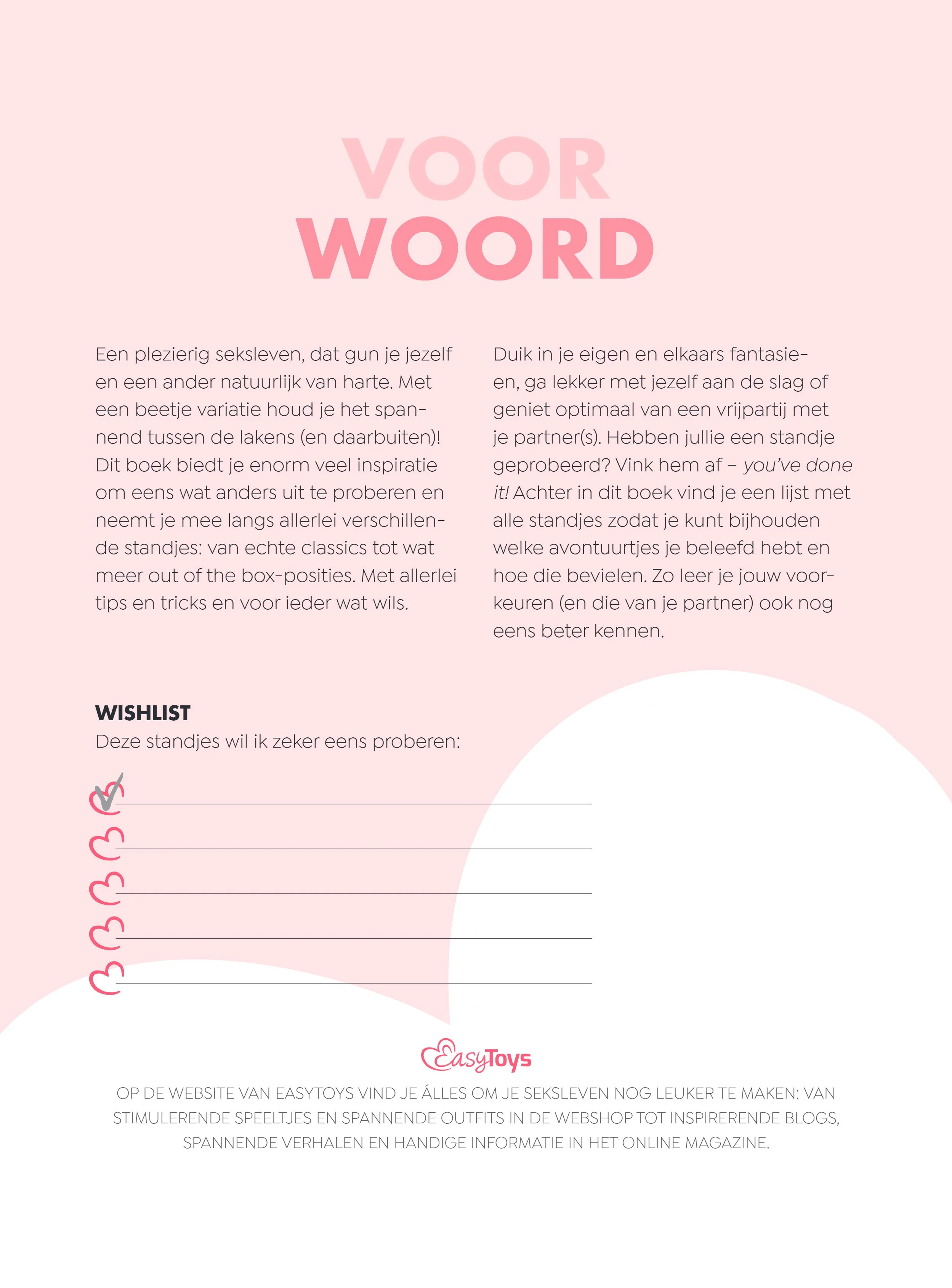 Een opwindend seks standjes boek vol met inspiratie uit de boekenkast. Welke hebben jullie al gedaan? Met de Kamasutra Bucketlist houden jullie het spannend in de slaapkamer! Dit seks bucketlist boek bevat 192 pagina’s waar je alles vind voor een nacht vol stomende seks: de lekkerste standjes, sexy tips en tricks en duidelijke en prachtig geïllustreerde afbeeldingen. Daarnaast is het een geweldige cadeau tip voor koppels die op zoek zijn naar nieuwe avonturen. Maak van plezier het belangrijkste aandachtspunt en laat je inspireren door meer dan 75 spannende seks standjes. In de Kamasutra Bucketlist vind je allerlei tips en tricks voor meer spanning tussen de lakens en ontdek je hoe seksspeeltjes en bondage jullie seksleven kunnen verrijken; solo, samen of met zijn drietjes! Houd bij welke standjes jullie hebben geprobeerd, hoe ze bevielen en vink deze vervolgens af in dit kamasutra boek. Ook is het mogelijk om standjes op je verlanglijstje te zetten. Zo houd je handig overzicht in al jouw seksuele avonturen. Het maakt niet uit of jullie al jaren samen zijn of elkaar nog moeten ontdekken: een beetje extra pit in de slaapkamer kan nooit kwaad. Met de Kamasutra Bucketlist wordt het in ieder geval nooit saai in de slaapkamer. Dit kamasutra boek wil je op je nachtkastje hebben liggen! "Soms heb je even een klein duwtje nodig om uit je comfortzone te komen en nieuwe dingen te proberen. Dingen die je misschien uit jezelf niet snel gedaan zou hebben, maar die je toch weer even een nieuwe impuls geven. Zie dit boek als met verschillende sekstandjes als een speelse manier om je verbeelding te prikkelen en nieuwe dingen uit te proberen. Je weet maar nooit of er onverwacht een paar blijvertjes tussen zitten." - Eveline Stallaart, seksuoloog   Let op: alleen in het Nederlands