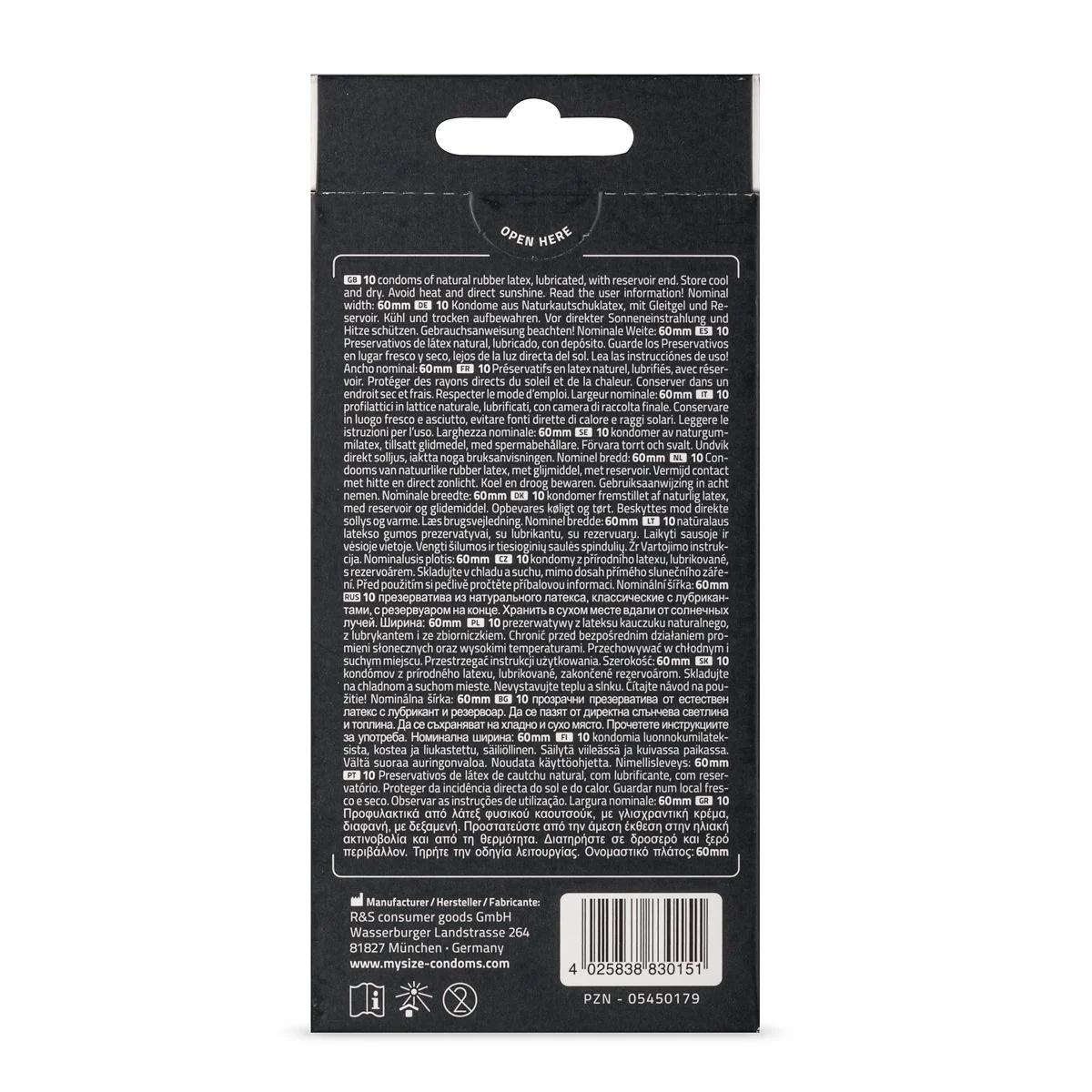 De condooms van het Duitse merk MySize worden gemaakt in diverse maten, zodat je altijd een perfect passend condoom kunt vinden. Deze condooms met een breedtemaat van 60 mm zijn ruimere condooms met de volgende afmetingen: Nominale breedte: 6 cm Voor omtrek penis: 12 - 12,9 cm Lengte: 19,5 cm Eigenschappen Condoom Smaak: Neutraal Glijmiddel: Normaal Kleur: Transparant Structuur: Glad Dikte: Normaal Aantal per verpakking: 10 Ingrediënten: aqua, hydroxyethylcellulose, citric acid, glycerin, potassium sorbate, sodium benzoate.