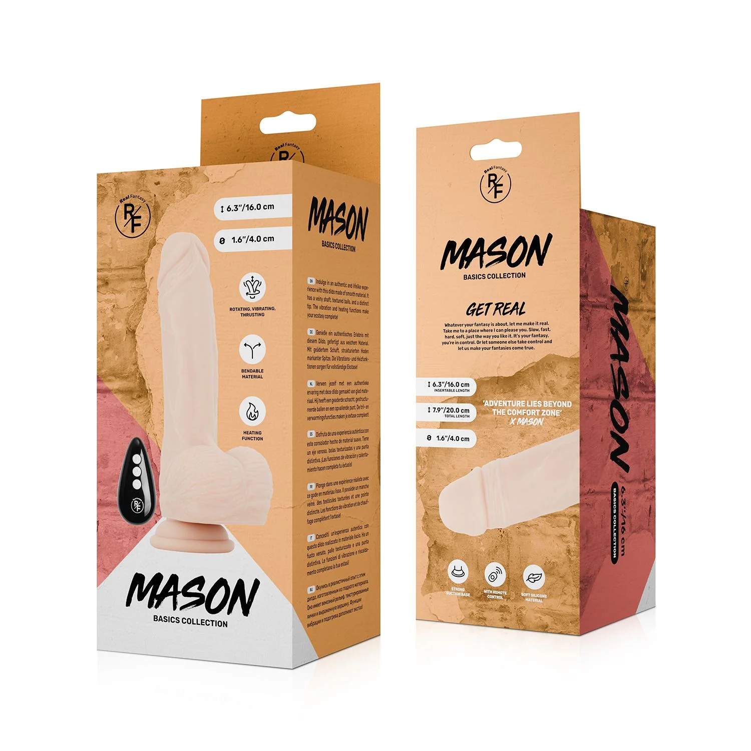 Productinformatie "Real Fantasy - Mason Stotende, Verwarmbare en Vibrerende Dildo"