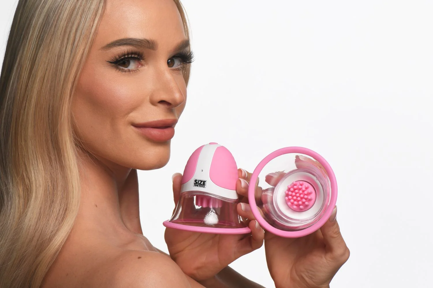 Productinformatie "SIZE MATTERS - Roterende Tepelzuigers - 4 Opzetstukken"
