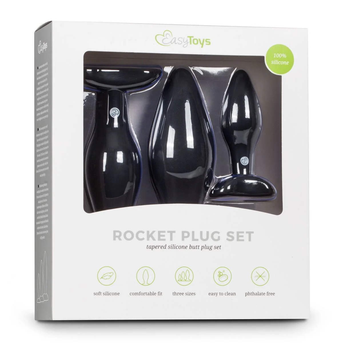 Geniet van een heerlijke anale ervaring met dit setje van drie buttplugs. Ze hebben alledrie een andere maat, dus je kunt rustig beginnen en geleidelijk verder gaan tot de grootste plug. Ze zijn gemaakt van materialen van goede kwaliteit en zijn heel comfortabel. Het stevige ontwerp in combinatie met een lichte flexibiliteit zorg voor een comfortabel en stimulerend gebruik. Met dit setje ben je binnen de kortste keren een expert in het anale spel!