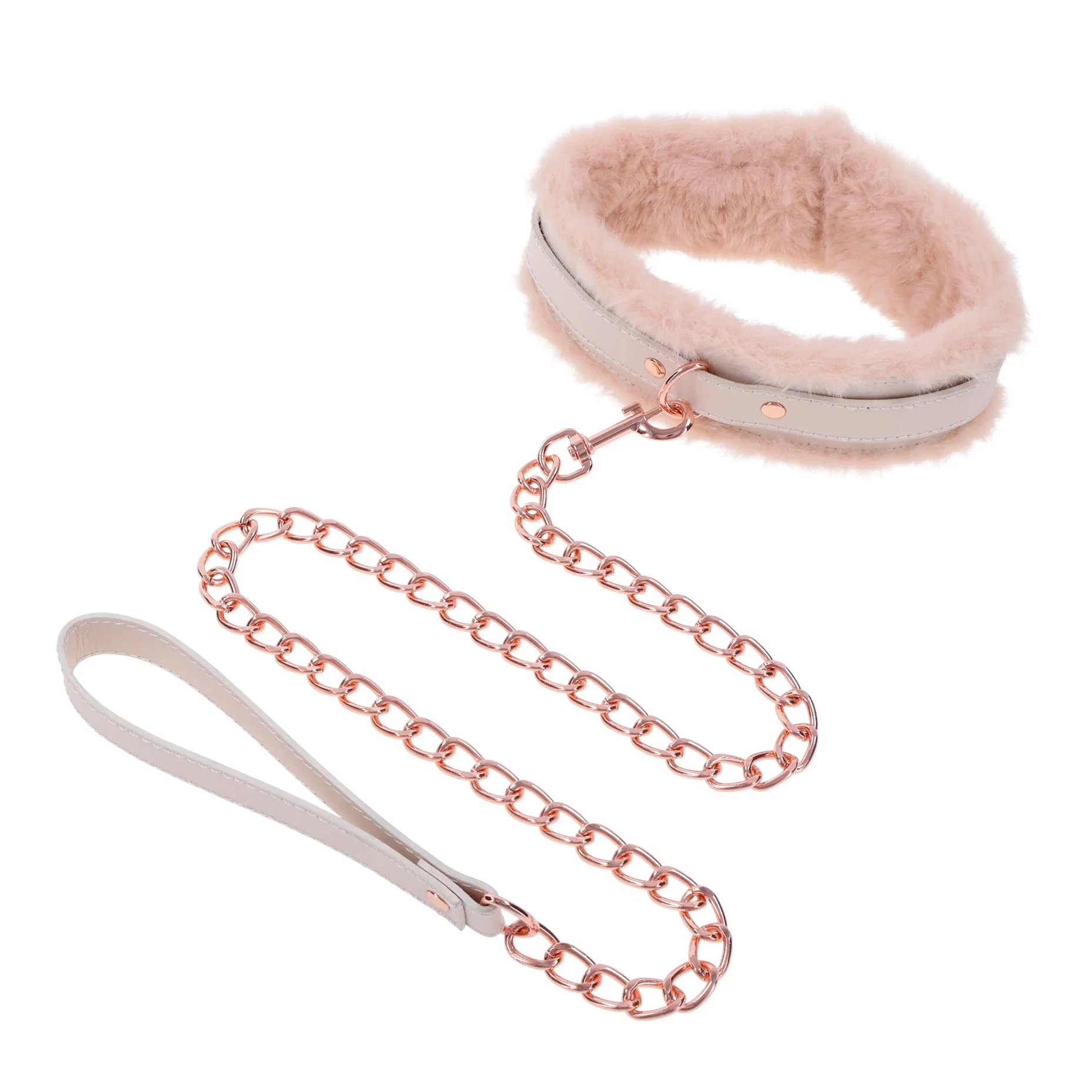 Productinformatie "Sportsheets – S&M Peaches ‘n CreaMe Bont Halsband & Lijn – Crème"